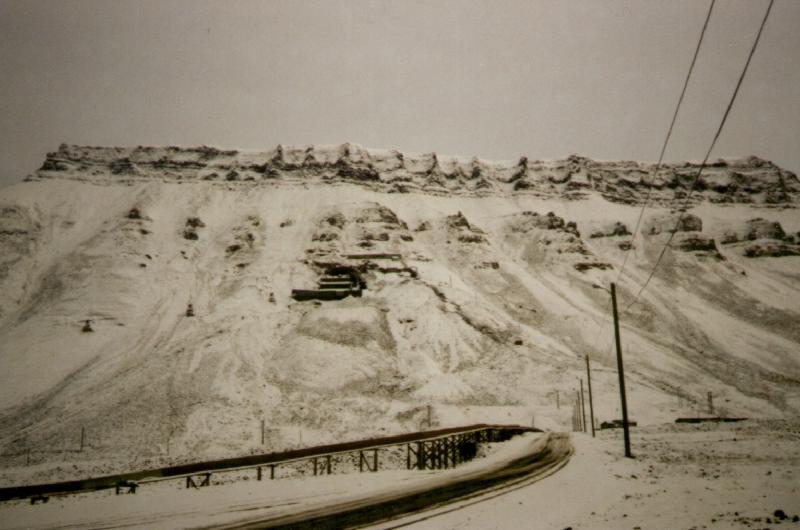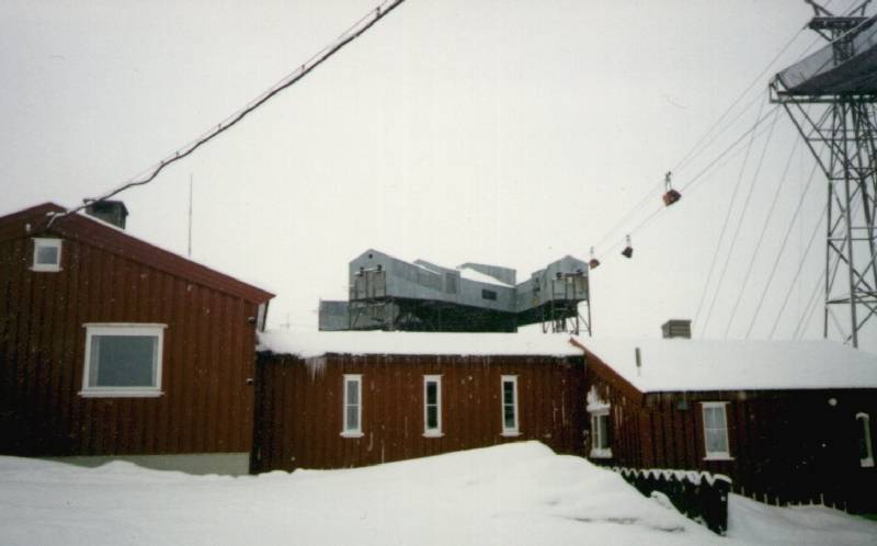 Ein ebenfalls stillgelegtes Bergwerk in der Stadt. Alle Kohlengruben in Longyearbyen liegen hoch oberhalb des Meeresspiegels... und über den Tälern. |