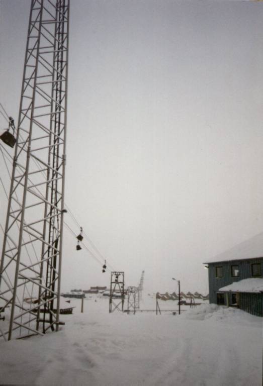 Die Seilbahn, mit der früher die Kohle aus den vielen verschiedenen Gruben nach Longyerbyen zur Skjæringa, zum Kraftwerk und in den Hafen gebracht wurde. Heute fahren LKW die Kohle von der ein paar Kilometer entfernten Grube 7 nach Longyearbyen. |